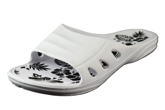 Klapki basenowe, damskie. Wykonane z miękkiego tworzywa. Miękka i anatomiczna wkładka posiadająca nieślizgającą się wyściółkę.