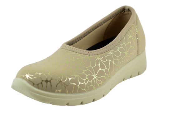Tekstylne obuwie damskie balerina włoskiej firmy SANITAL, idealnie dopasywujące się na bardzo wrażliwe i spuchnięte stopy. Z zewnątrz wykonane są z rozciągliwego, miękkiego materiału. Wewnątrz obuwia znajduje się bawełna. Podeszwa to wysokogatunkowe tworzywo.