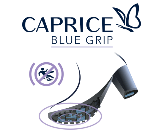 System pięty z komorą powietrzną opracowany przez CAPRICE tłumi uderzenia o ponad 50%. Na przykład technologia CAPRICE ANTISHOKK skutecznie chroni kręgosłup, krążki międzykręgowe i stawy.